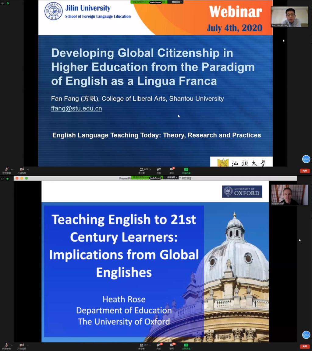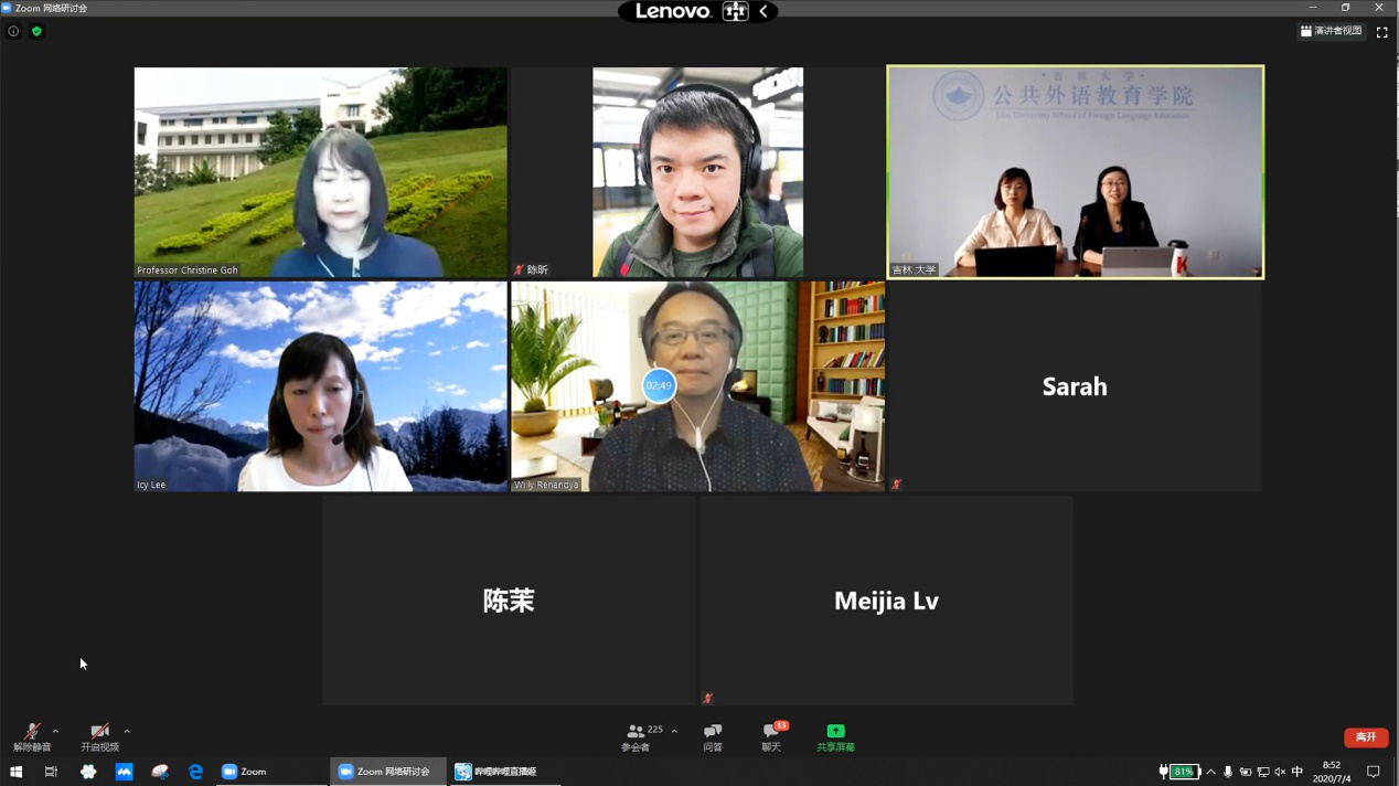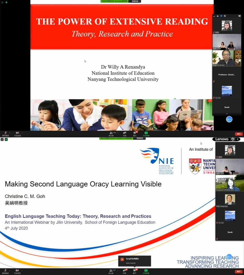 本次线上研讨关注新形势下英语教学的主要问题、最新成果、学术热点、学术动态及发展趋势,是我院推动与国内外专家学者交流合作的又一部署与举措。会议由我院教师马小浩博士主持,院长潘海英教授到会并致开幕词,副院长杜中全副教授参会。潘院长指出,公共外语教育学院历经几十年发展,目前正以吉林大学“双一流”建设为核心,不断探索外语教育新举措,加强学科建设并已取得喜人成绩,同时她也对莅临会议的各位嘉宾表达了诚挚的谢意和欢迎。上午时段,新加坡南洋理工大学国立教育学院Willy Renandya博士、Christine Goh教授、香港中文大学教育学院Icy Lee教授分别就如何进行英语泛读教学,如何进行英语听说教学,如何引导学生进行反思性写作来提升学习效果这三大问题做了精彩发言。下午时段,雷速体育app官网姜峰教授、汕头大学文学院方帆教授、牛津大学教育学院Heath Rose博士围绕学术话语的立场表达和英语作为世界语背景下的英语使用者身份和英语教学实施路径两大话题展开讨论。六场报告精彩纷呈,触及听说读写技能、元认知与学习策略、话语能力、学习者身份、语言教学方向等多个英语教学中的核心问题,获得参会专家和师生的一致好评。与会人员对此次线上会议给予极高的评价,他们表示会议内容丰富、含金量高,对今后的教学和科研工作有极大启发,会议形式符合疫情防控工作要求,组织有序。